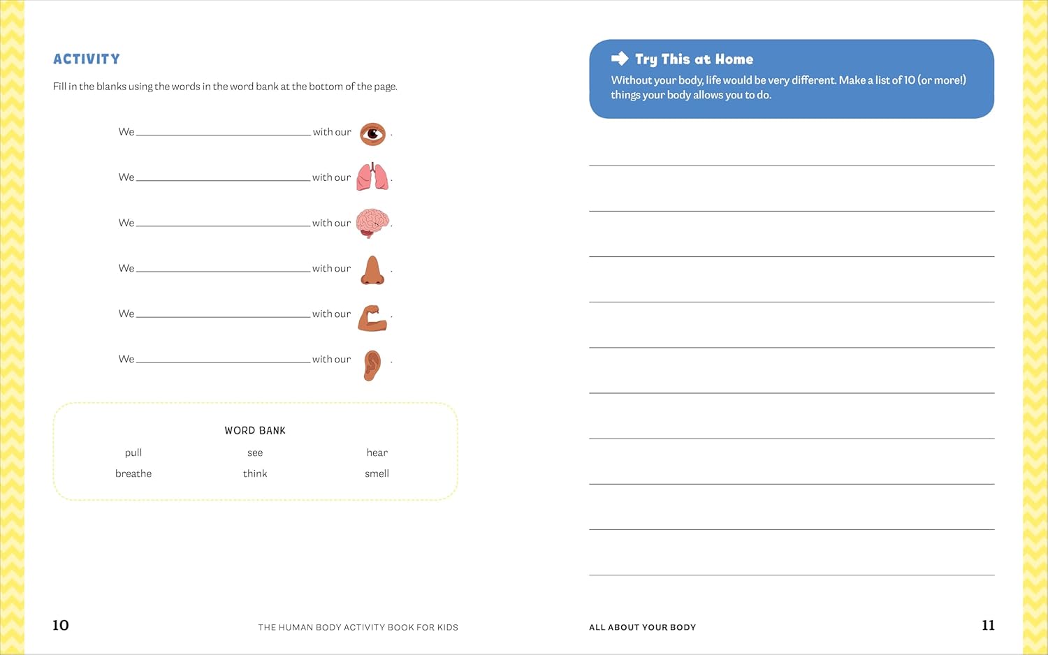 Engaging activities―This kids anatomy book keeps the learning fun with everything from connect-the-dots and crosswords to hands-on experiments.