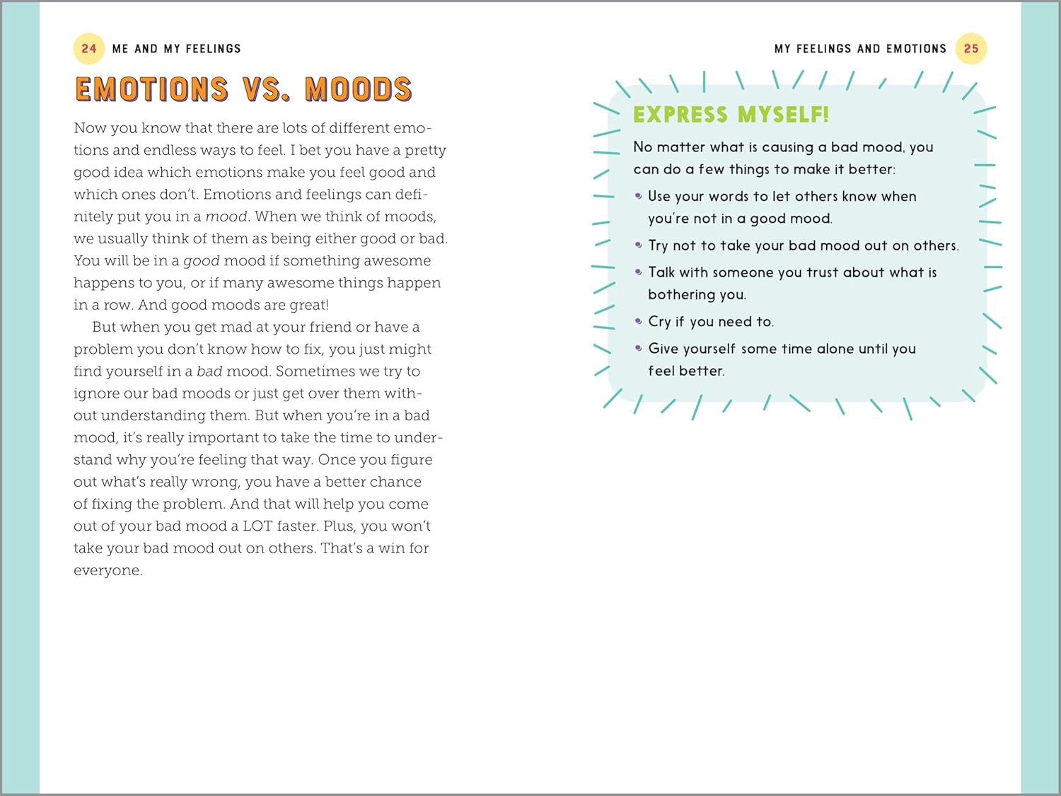 This book gives kids the skills to stay in control―by breathing deeply, saying positive things to themselves, talking about their feelings instead of keeping them inside, and more. Help young girls and boys learn to deal with all kinds of feelings, including the hard ones like sadness, anxiety, or even fear.